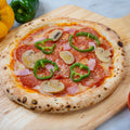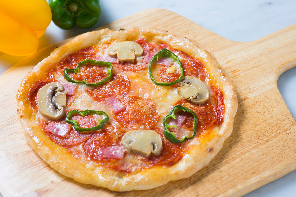このピザは、風味豊かなトマトソースを塗り、アメリカで親しまれるペパロニ(サラミ)を贅沢に使用。サラミの豊かな味わいと、チーズの濃厚なコクが抜群の相性を見せます。ベーコンとマッシュルームが食べ応えのある食感と風味を提供します。